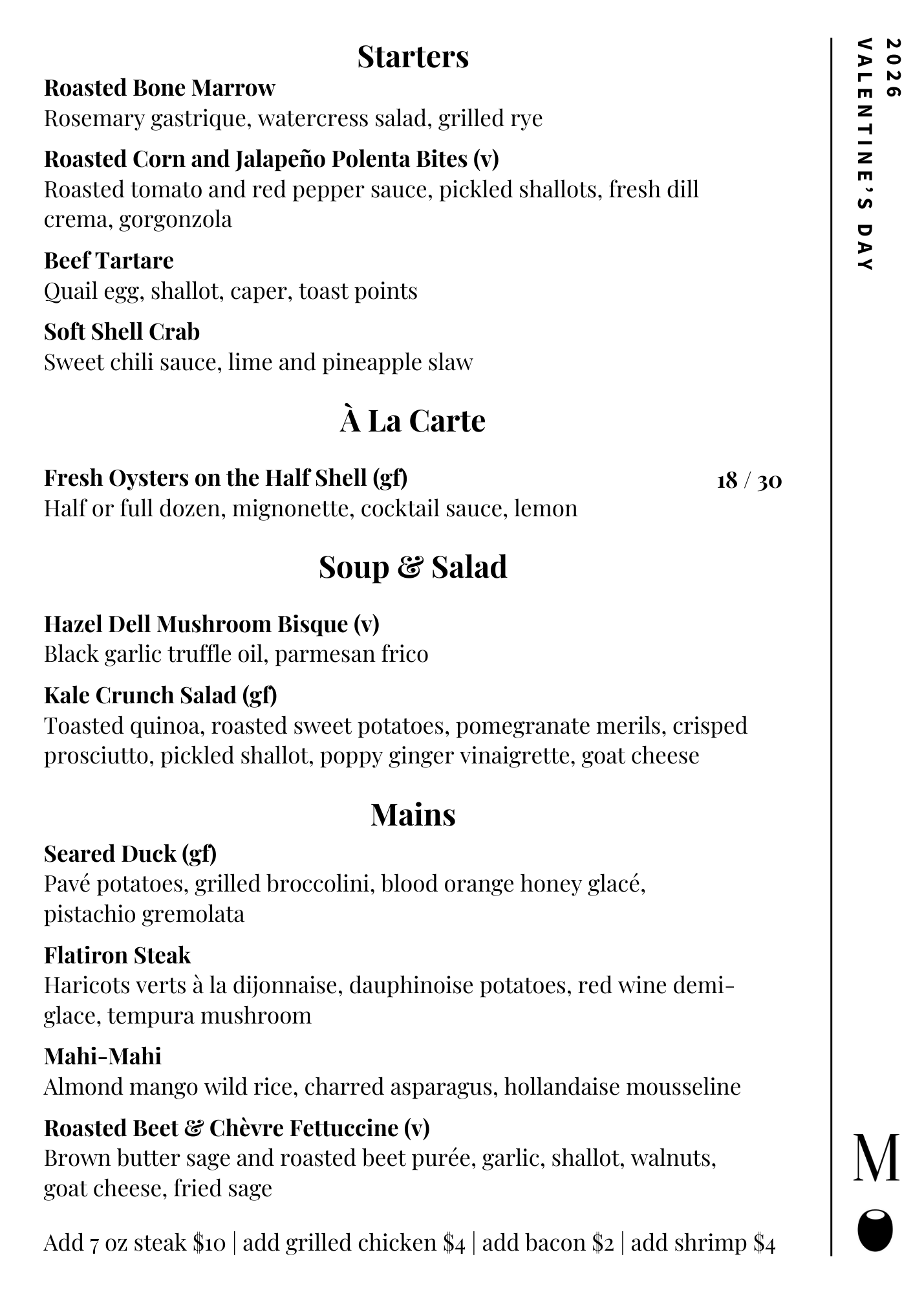 Available Friday 2.13 and Saturday 2.14